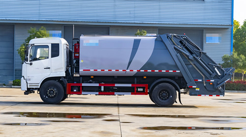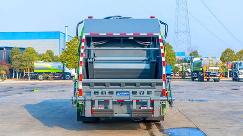 東風多利卡D9壓縮式垃圾車改裝容積10~12m3,選用3950和4500兩種軸距底盤,箱體采用邊4底5、Q235碳鋼板,帶有前推板和刮板,帶有污水箱。雙向壓縮,標配帶掛桶反轉(zhuǎn)機構(gòu),可選其他樣式后翻轉(zhuǎn)。