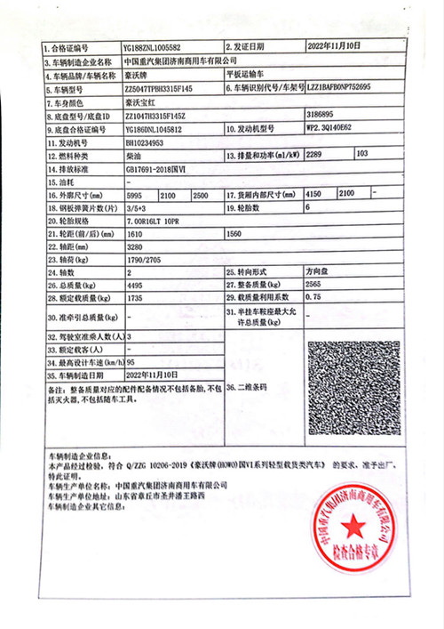 濰柴140馬力國六發(fā)動(dòng)機(jī),法士特8檔帶高低速變速箱,3280軸距,700鋼絲胎,整車尺寸:5995*2100/2250*2500,帶中控,電窗,皮座椅,氣喇叭,全包裹,車鑰匙遠(yuǎn)程遙控玻璃升降,原廠空調(diào)。
