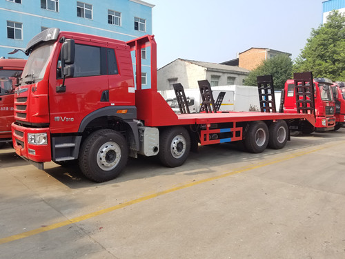 采用CA3310底盤,錫柴350馬力,12.00-20輪胎,板長9米,可以10-40噸挖機。